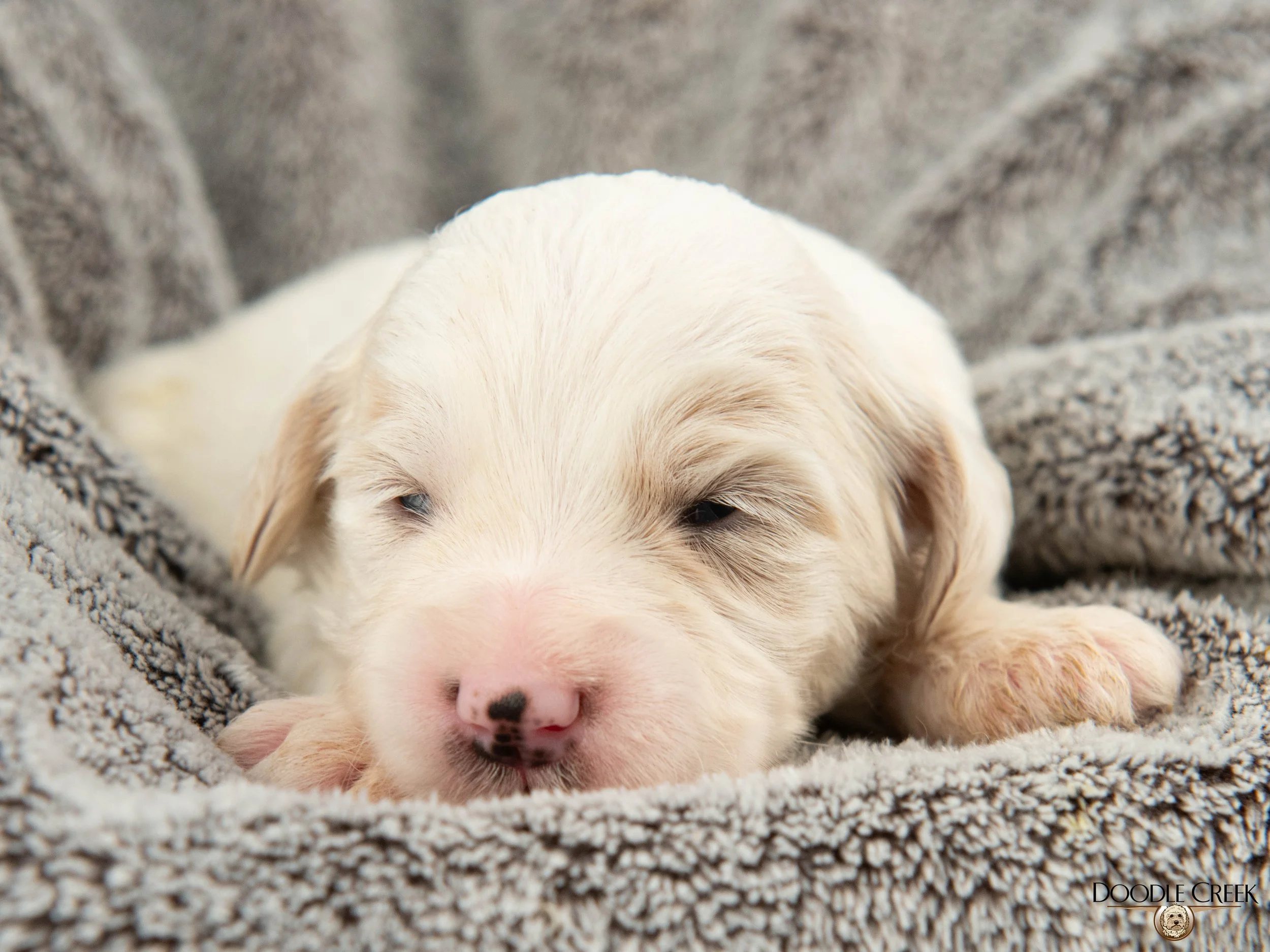 Amelia & Murphy’s litter of six female and three male puppies have arrived and they are absolutely stunning!!! These guys arrived June 12, 2024 and they will be ready for their new homes August 10, 2024. They have stunning colours in the honey and gold and a number have the beautiful white abstract markings. These guys are going to be stunning dogs to say the least. Amelia & Murphy are a great pair of dogs. Amelia is a gorgeous Multigen Mini English Goldendoodle with a calm and affectionate demeanor. Her plush fleecy coat is a stunning blend of deep red and white hues with a soft texture that's pleasant to the touch. Amelia has a naturally gentle personality, making her an easy pet to be around. She is a true gem that anyone would be lucky to have as a faithful companion, and her loving and calming presence has certainly made her a beloved member of the family here at Doodle Creek. And the dad, Murphy, is the adorable Multigen Mini English Goldendoodle! Murphy has a heartwarming personality. His round, teddy bear face and beautiful eyes will have you smitten at first sight! Murphy's coat type is unique and fortunately, all the puppies in his litter have inherited his charming appearance. As they grow, they will look similar to Murphy, making them the perfect pick for families who are looking for a cute and friendly furry friend. The puppy’s coats all have the highly sought after fleecy, plush, soft, low to non shedding type. They will be great with those who suffer from allergies. We expect these guys to be around 25-45 pounds as adults and in the 16-19 inches range. They will come with their first vaccinations, vet check, dewormed, microchipped, as well as our two year written genetic health guarantee. If you are interested in reserving a puppy from this litter, we would ask that you complete our online Application and we will get back to you with further details regarding the completion of your reservation. This litter is priced at $6,000 for 1st pick male and female, $4,000-$4,500 for each pick after that.