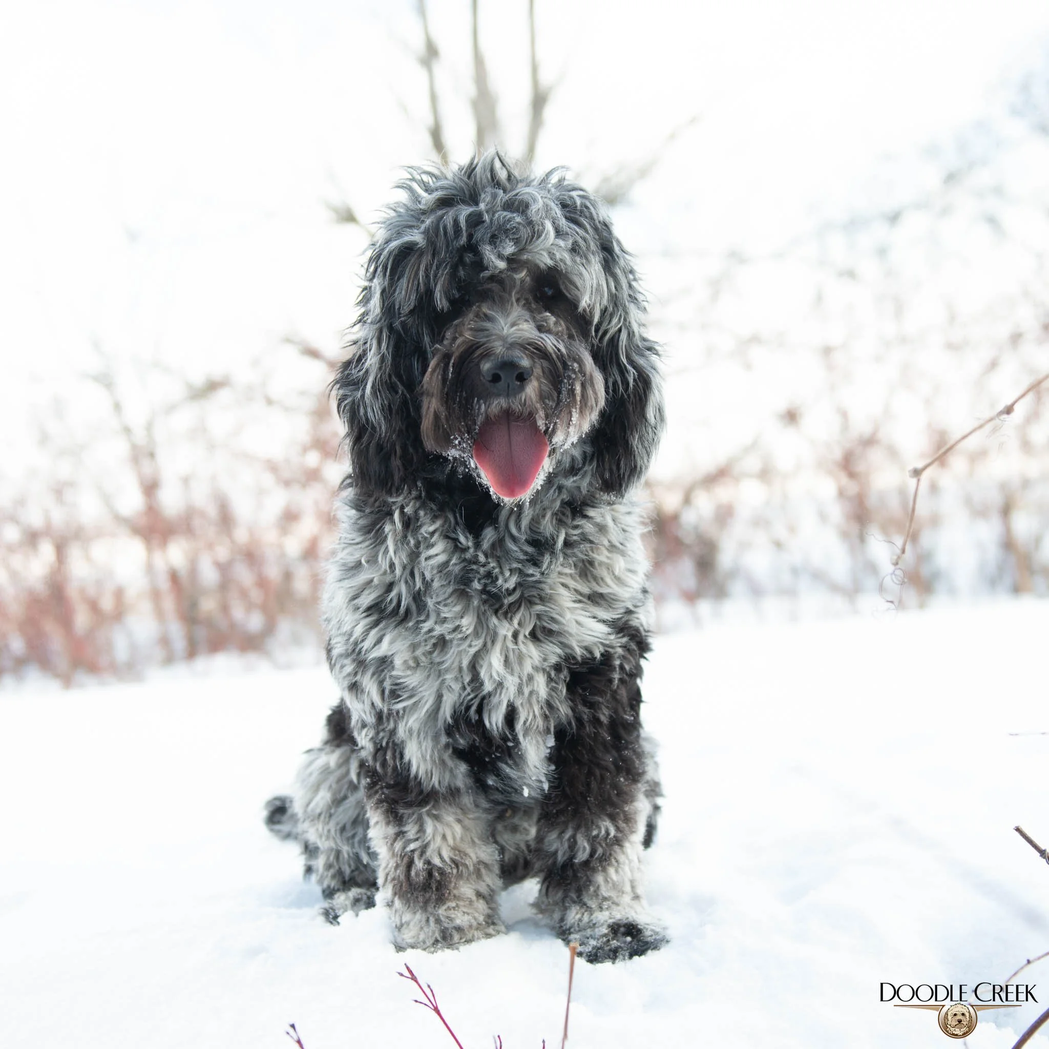 Ausha, the F1b Mini English Goldendoodle, is a remarkable canine companion. This adorable ball of fur stands proud at 17 inches and weighs a solid 42 pounds, showcasing her sturdy build. She has the lovely fleecy coat. Ausha's vivacious personality is undeniably wonderful, as she effortlessly balances her active nature with her warm, loving, and friendly demeanor. Her dazzling and unique markings add to her overall charm, making her a true head-turner. Ausha's exceptional traits, both in terms of temperament and appearance, are bound to be inherited by her future puppies, ensuring that her lineage will carry on her legacy of greatness.