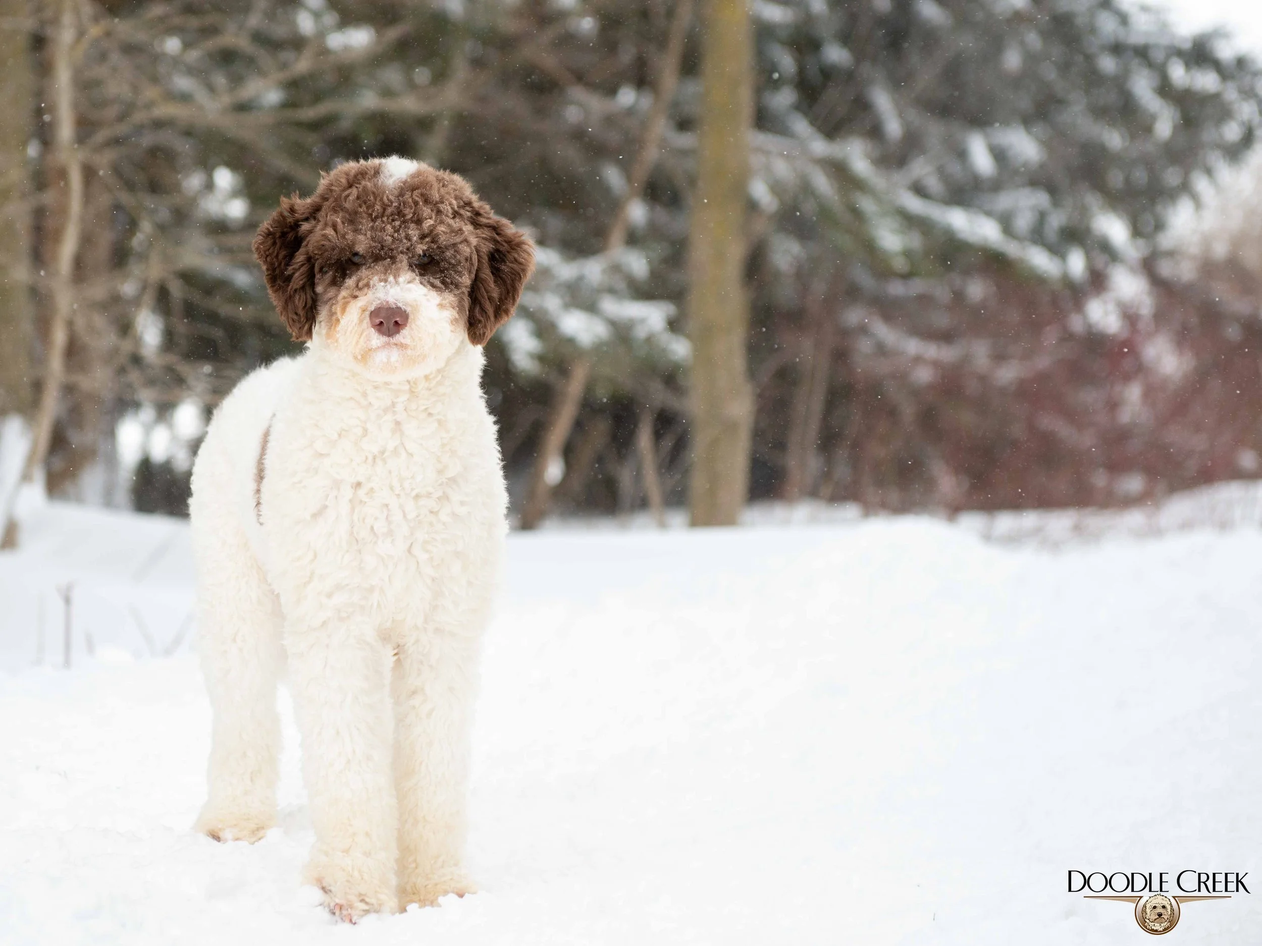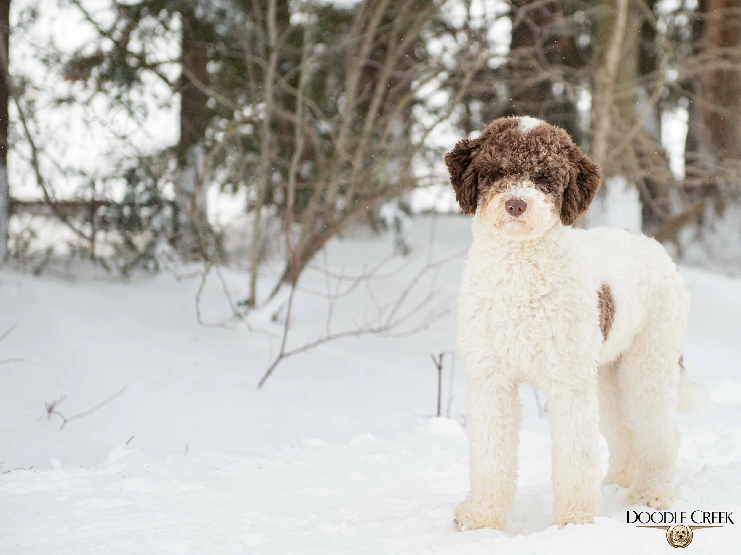 Daisy is a beautiful Mini Olde English Goldendoodle from Candace & Duffy’s latest litter. She was born on May 25, 2025 and is now ready to begin life in her forever home. Daisy is anticipated to weigh between 25-45 pounds and stand 15-18 inches tall as an adult. Daisy boasts an adorable teddy bear face that complements her happy, energetic personality - making her a delightful addition to any family. If you are searching for a wonderful puppy to bring joy to your life, Daisy may be the perfect match for you! If you have any further questions regarding Daisy, or you feel she would make a great companion for your family, get in touch with us @ 519-721-9510 or by email.