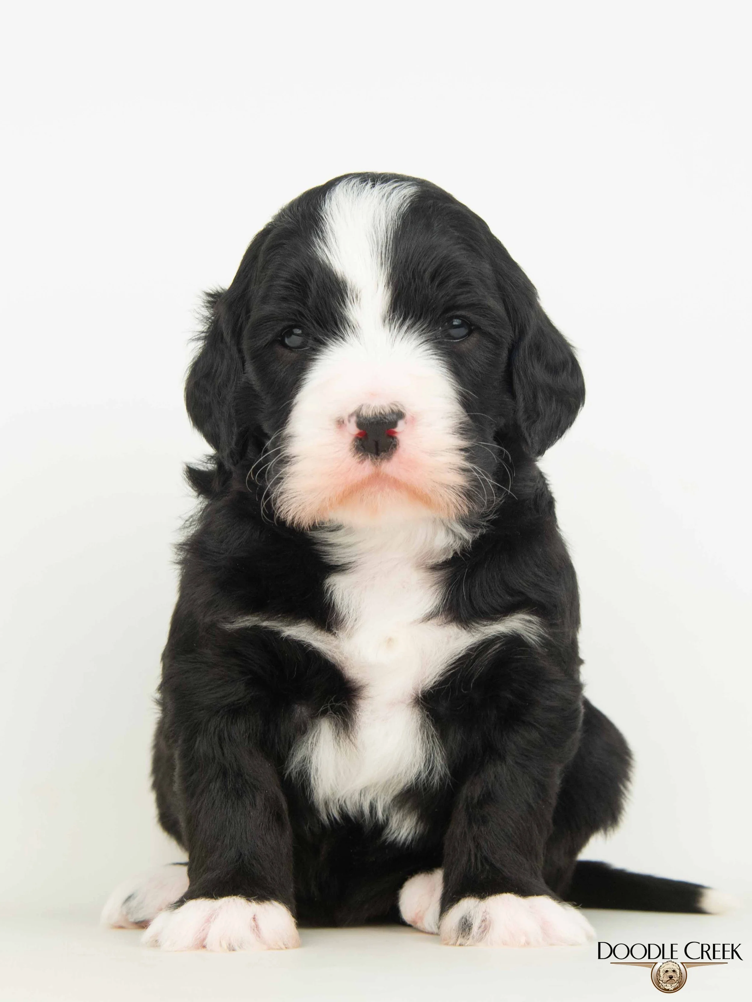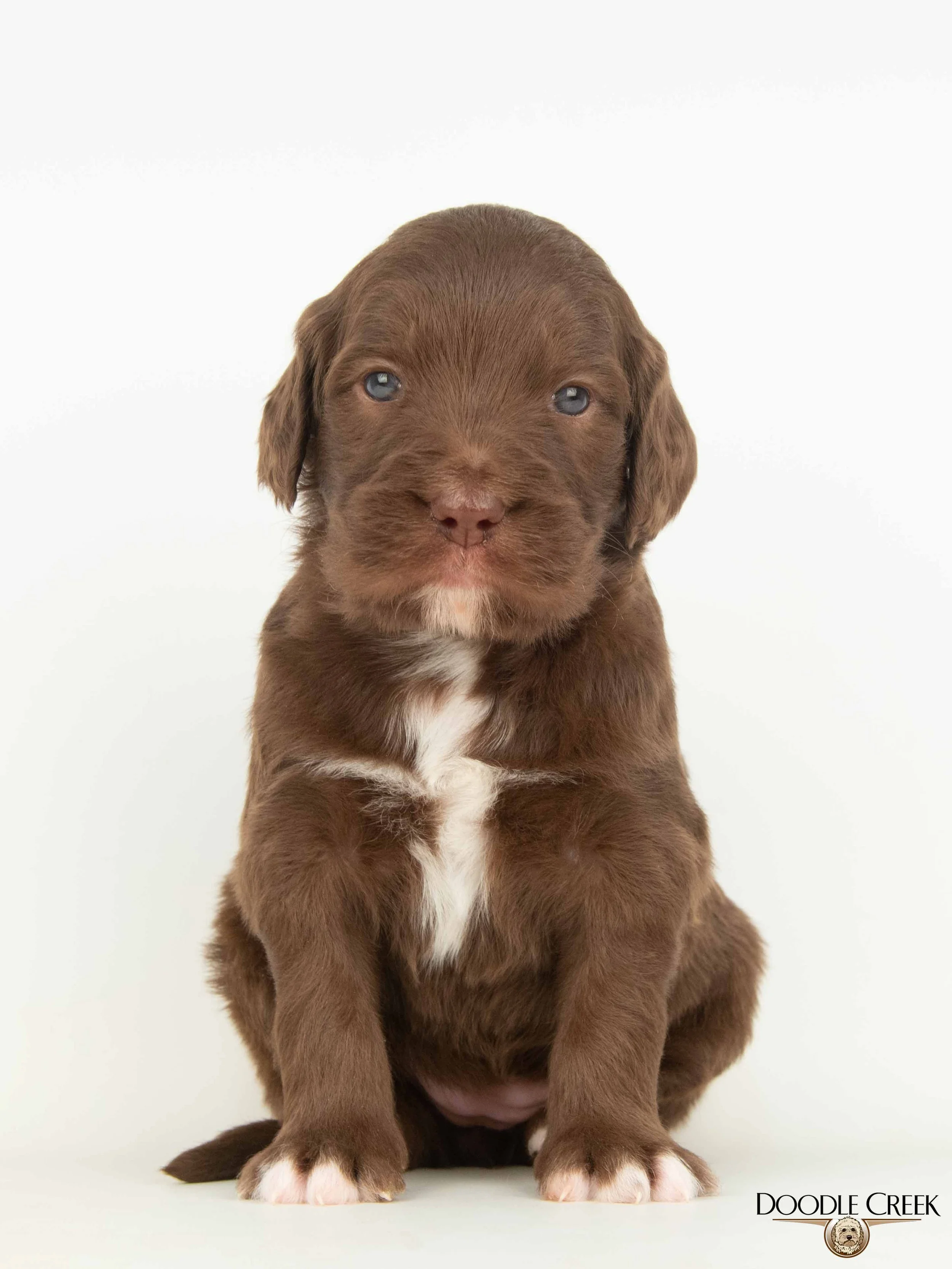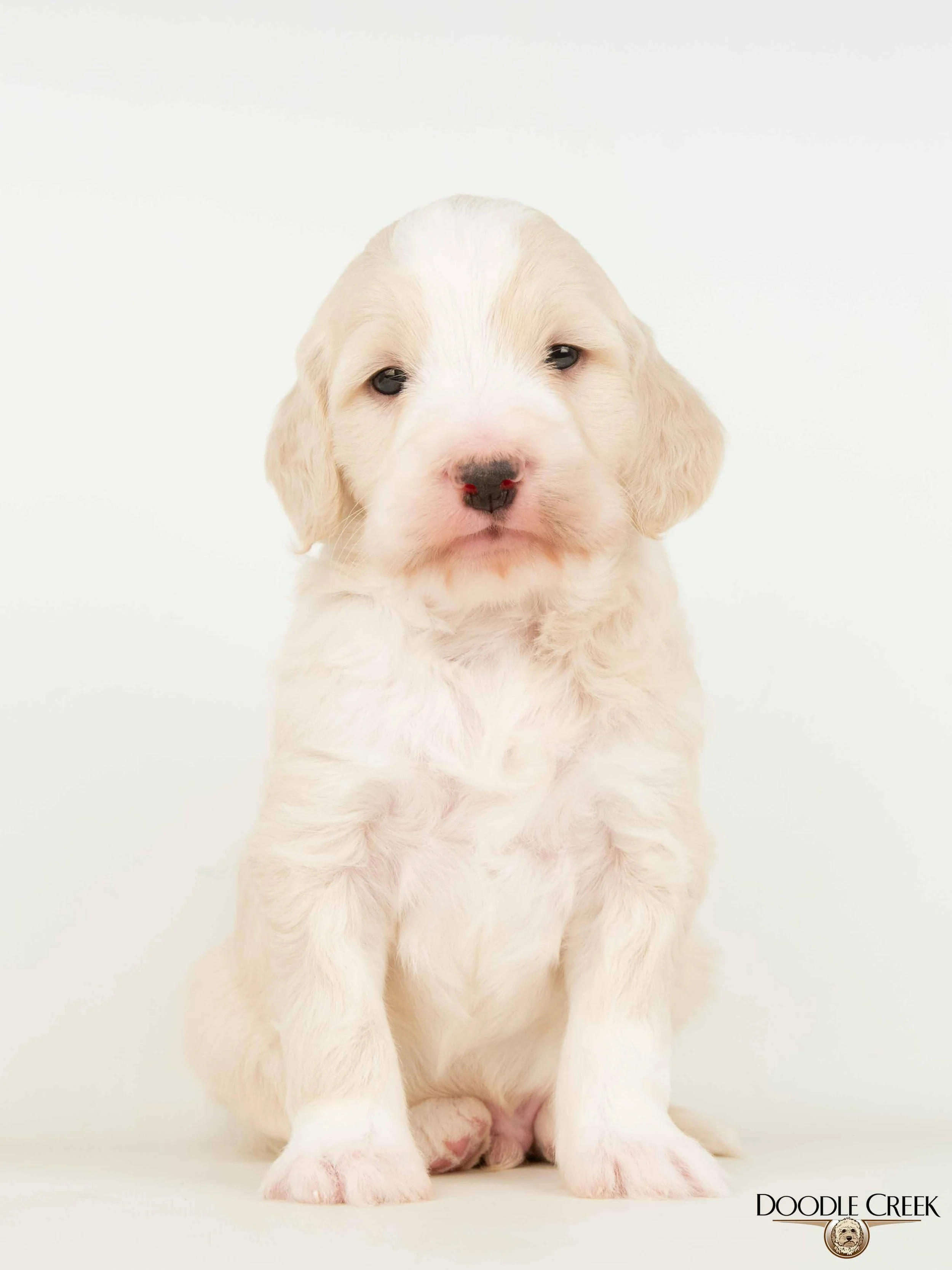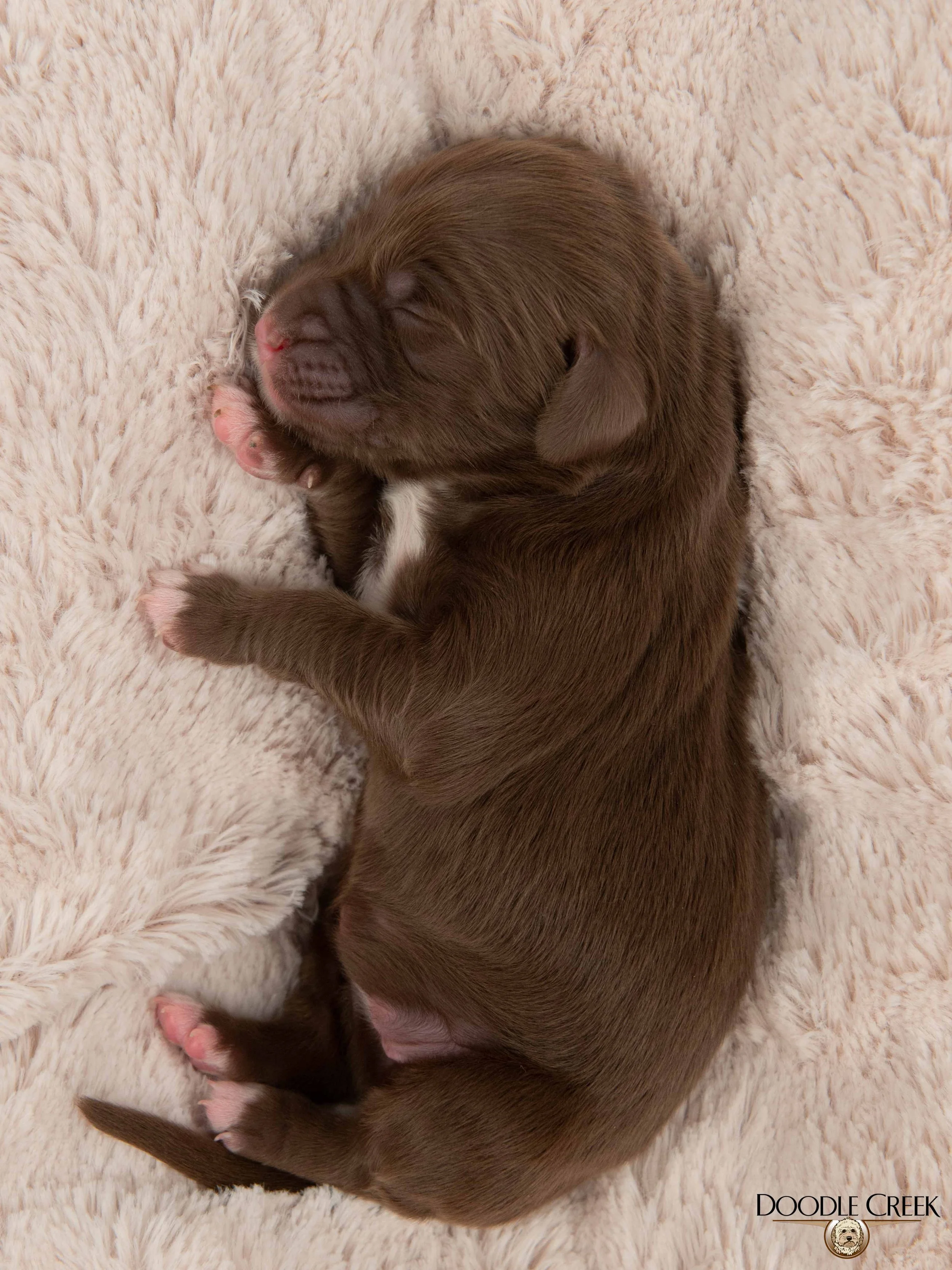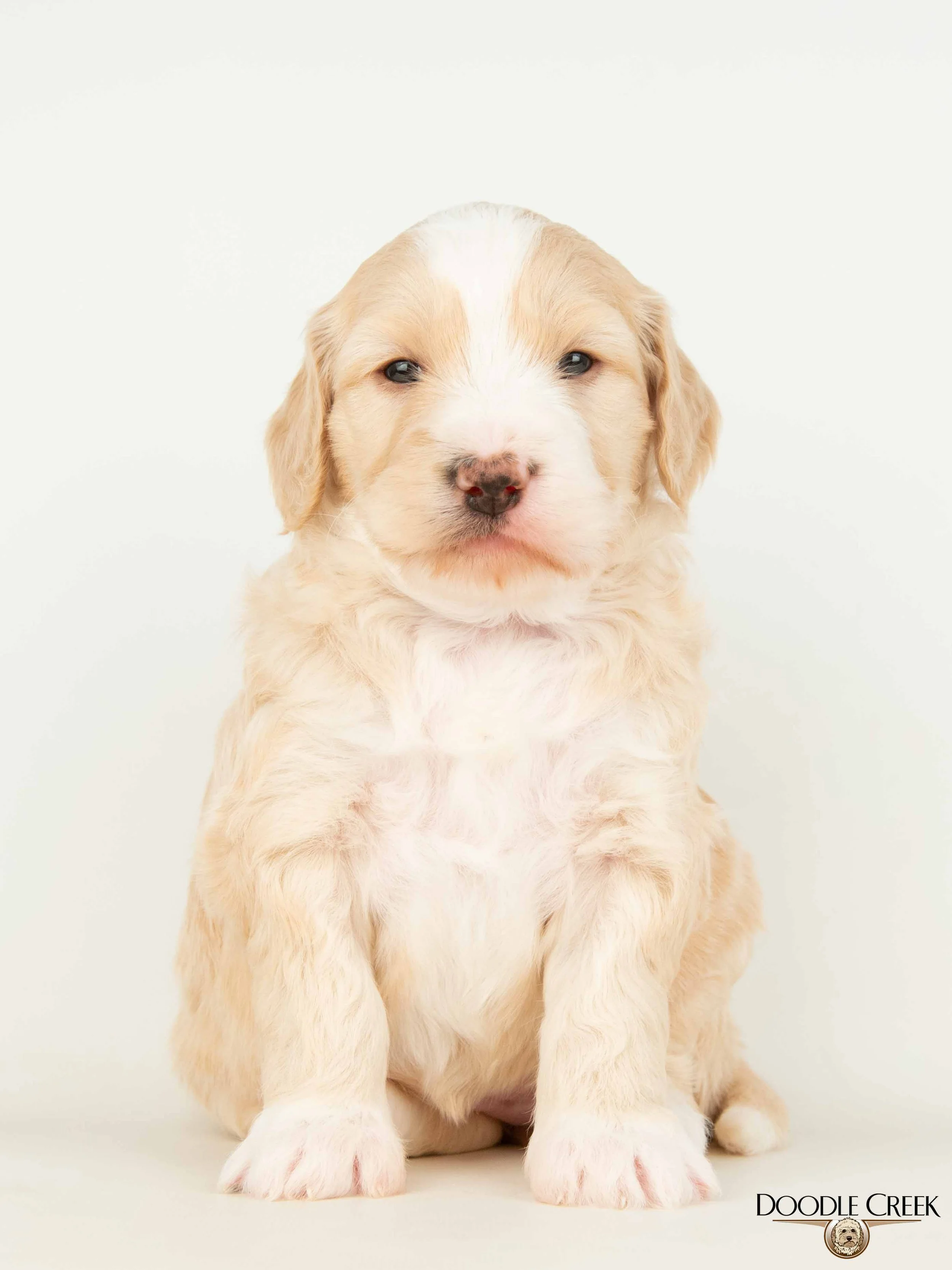 Missy and Ozzie have had their adorable litter of Medium Olde English Goldendoodles! There are five females and two males; which range in colour from apricot/white, brown/white, black, and black/white! The puppies arrived March 10, 2026 and will be ready to go to their new homes May 9, 2026. Missy’s loveable, fun personality paired with Ozzie's playful, happy all the time attitude will make for wonderful dogs. These guys will weigh 35-55 pounds and be 18-22 inches in height as adults. They will come with their first vaccinations, vet checked, dewormed, microchipped, as well as our two year written genetic health guarantee. If you are interested in reserving a puppy from this litter, we would ask that you complete our online Application and we will get back to you with further details regarding the completion of your reservation. See below for pricing and availability on this litter. Tax is included in all prices.