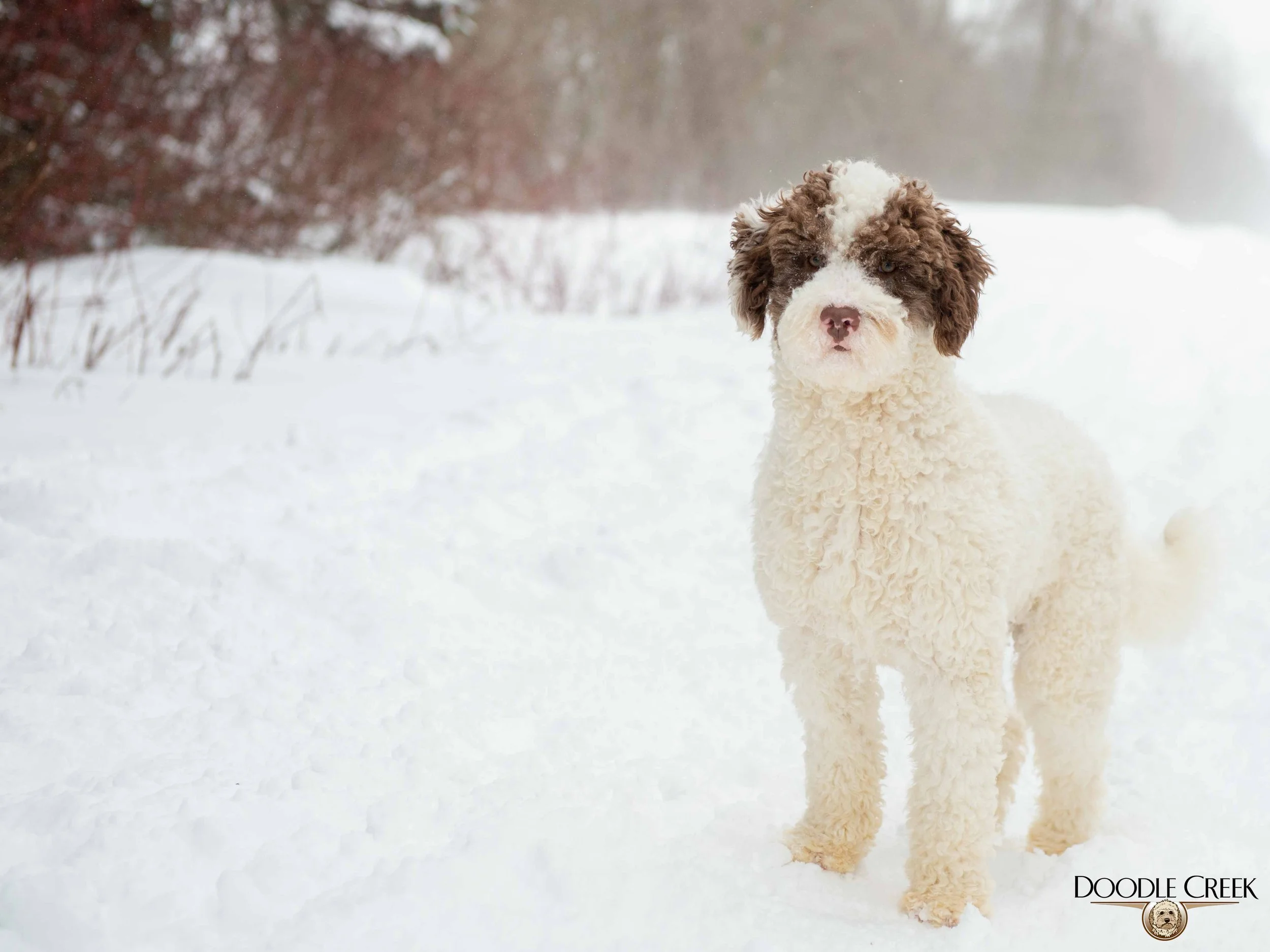 Meet Rambo, a handsome Mini Olde English Goldendoodle from Candace & Duffy’s latest litter, born on May 25, 2025. Now ready to begin life in his forever home, Rambo is expected to weigh between 25-45 pounds and stand 15-18 inches tall as an adult. This lively boy has a friendly personality that will make him a joy to be around. Whether you are on the look-out for a cute teddy bear face along with a wagging tail, or an adventurous little friend; Rambo could be the perfect fit for you. If you have any further questions regarding Rambo, or you feel he would make a great addition to your family, get in touch with us @ 519-721-9510 or by email.
