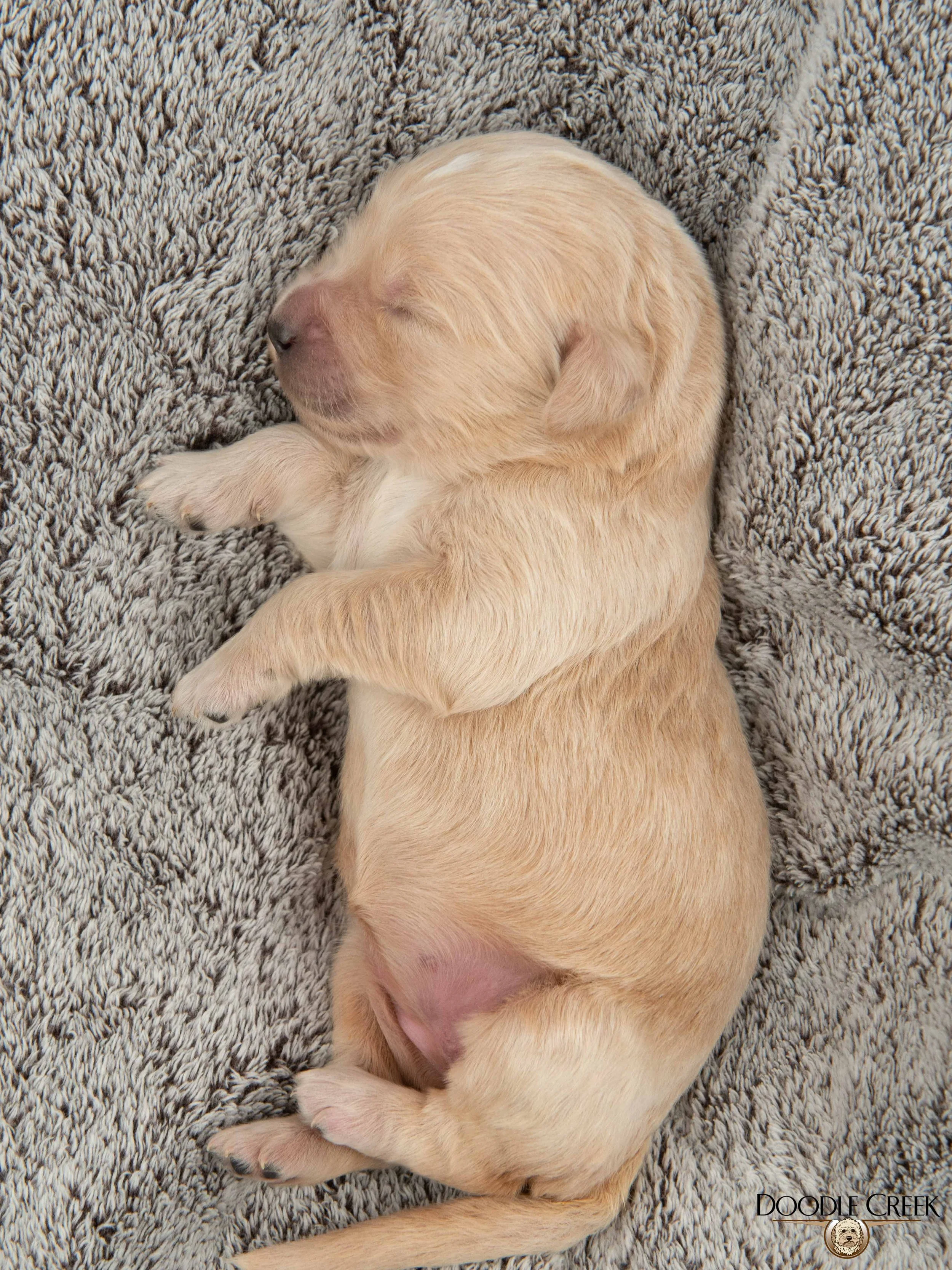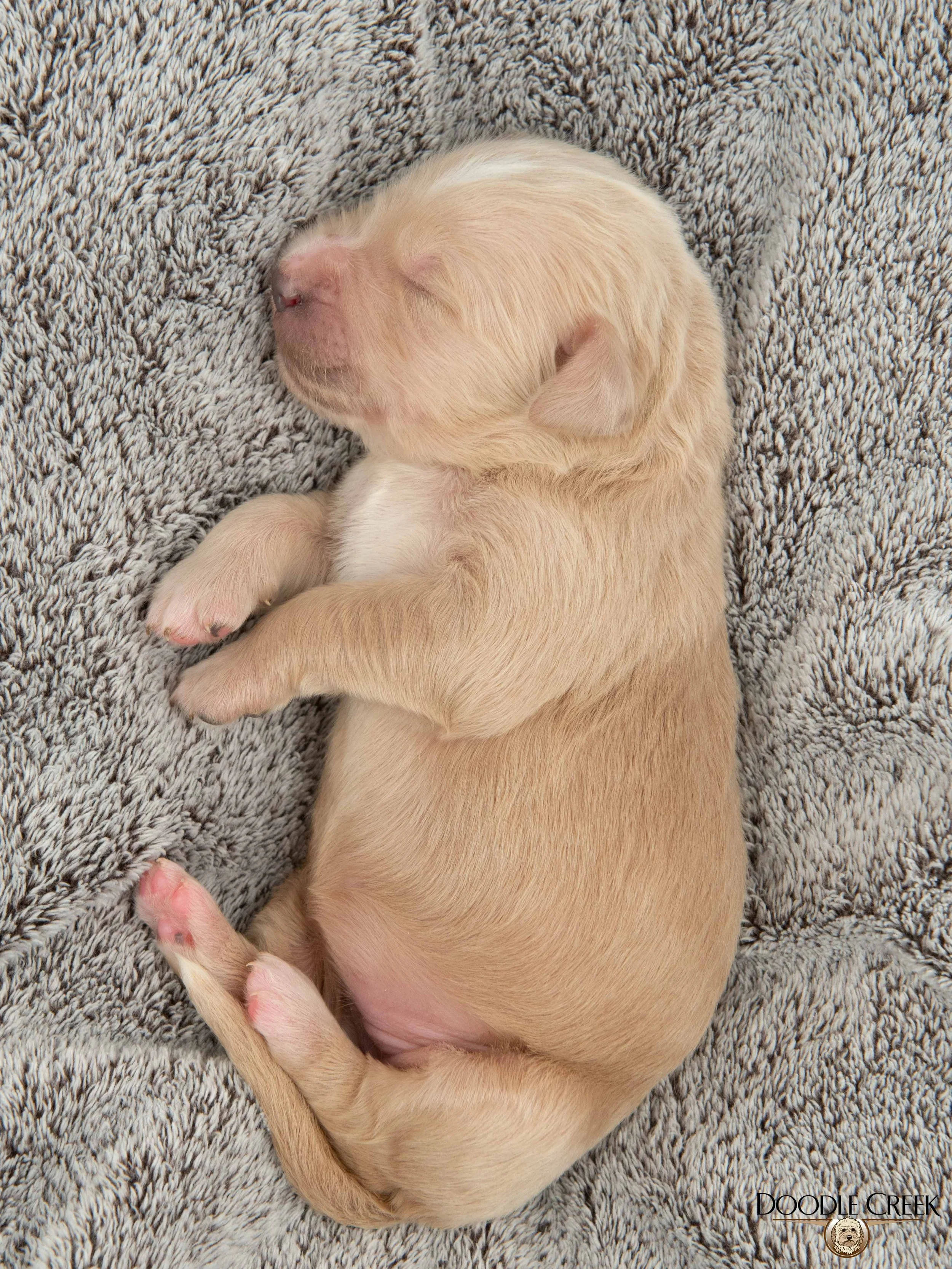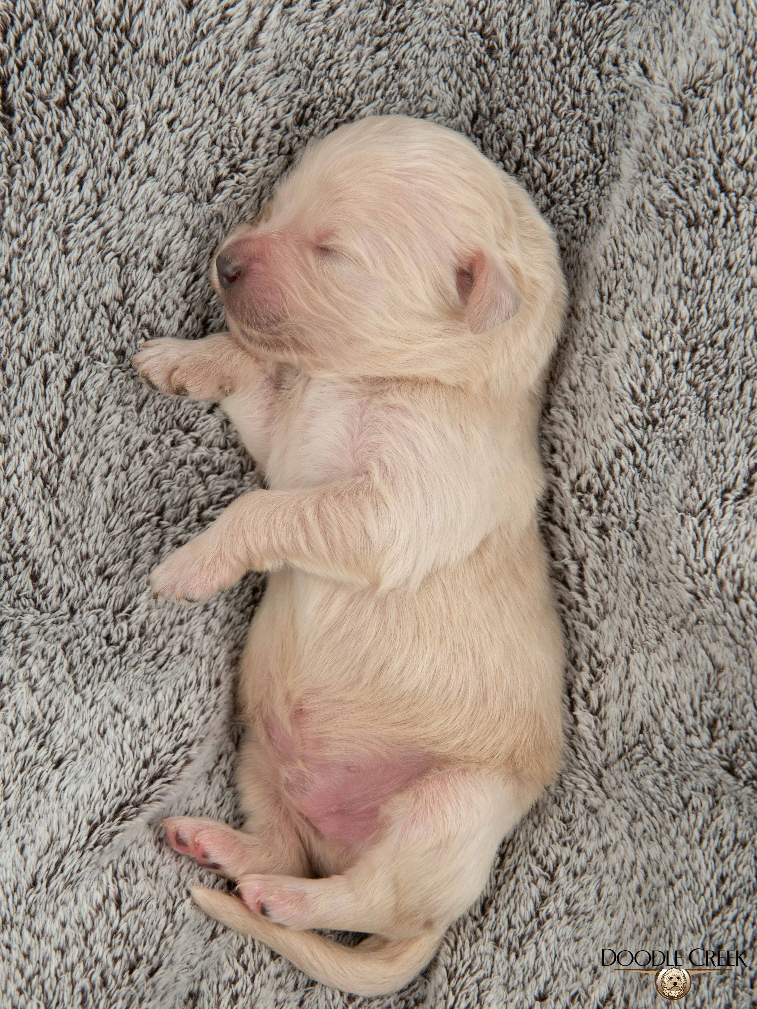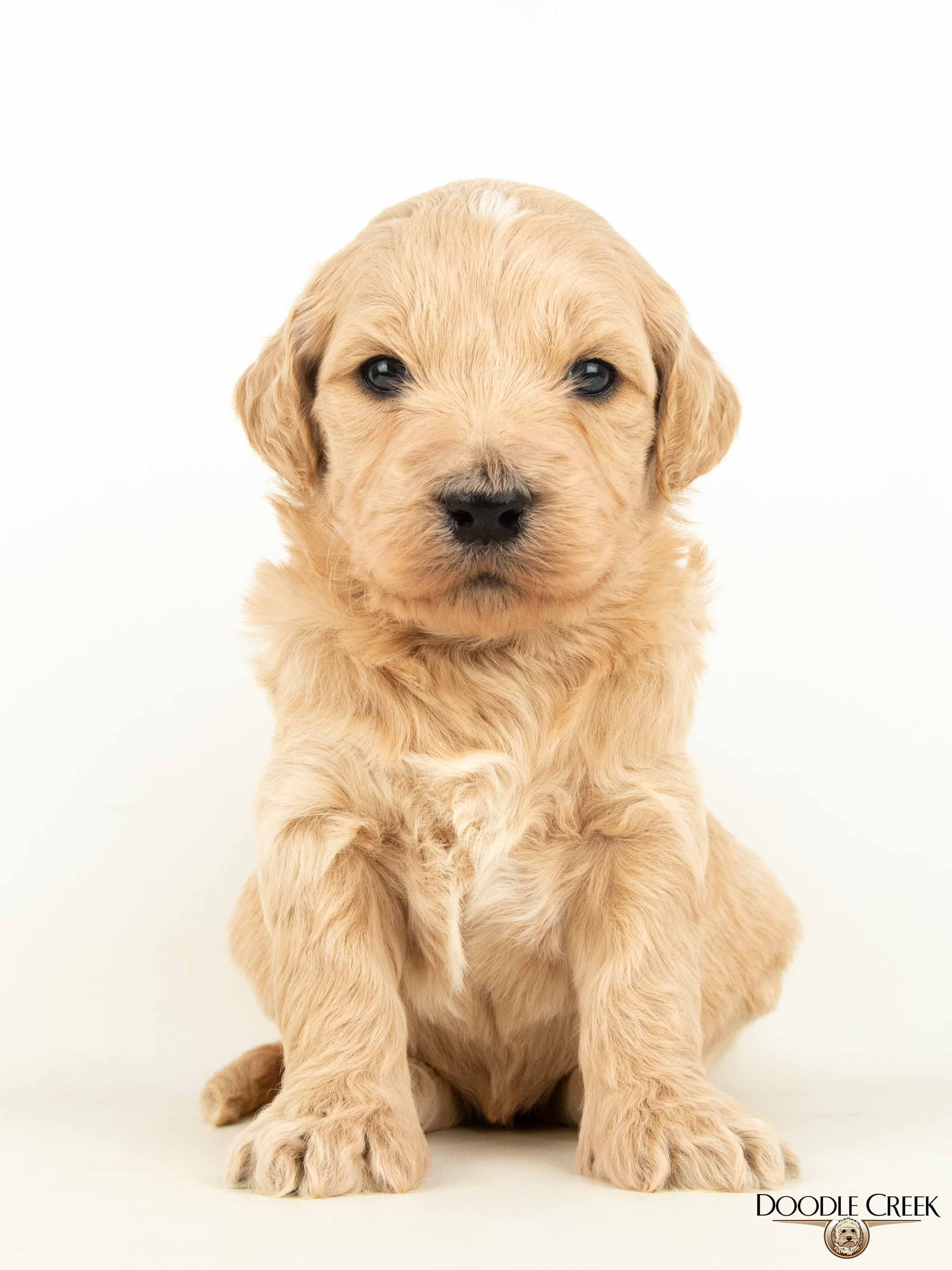 Zola and Wilson’s beautiful litter of F1 Standard English Goldendoodle puppies arrived on February 24, 2026! There are five females and four males in the litter, which will be ready to begin life in their new homes on April 25, 2026. Zola’s big, round face and sturdy bone structure, along with Wilson’s regal looks and loving personality, will bring such a great combination to those looking for a wonderful, well rounded puppy. The puppies range in colour from cream to apricot\white and will have that true Teddy Bear look. They will be excellent with children and will make the ultimate family companion. As adults, they are expected to stand 21-24 inches in height and weigh 55-80 pounds. They will come with their first vaccinations, vet checked, dewormed, microchipped, as well as our two year written genetic health guarantee. If you are interested in reserving a puppy from this litter, we would ask that you complete our online Application and we will get back to you with further details regarding the completion of your reservation. See below for pricing and availability on this litter. Tax is included in all prices.