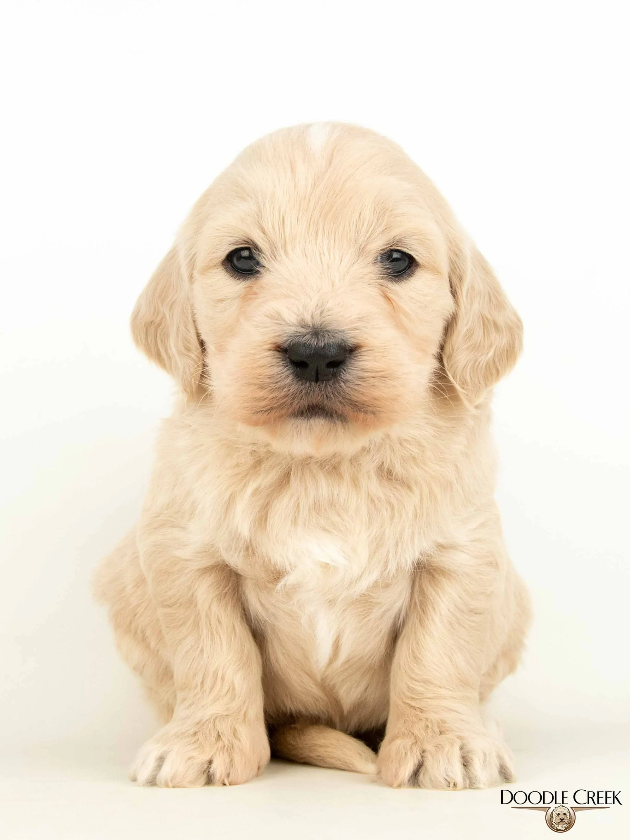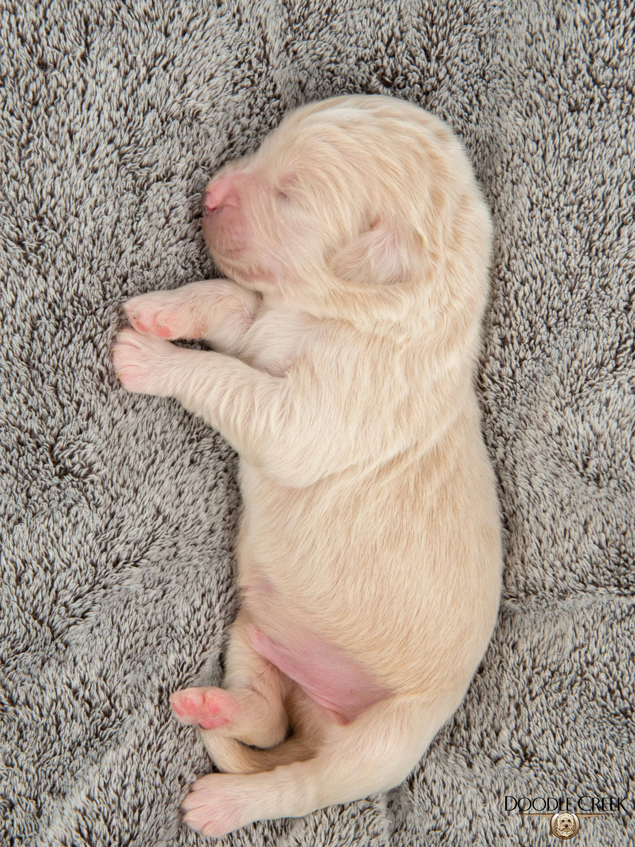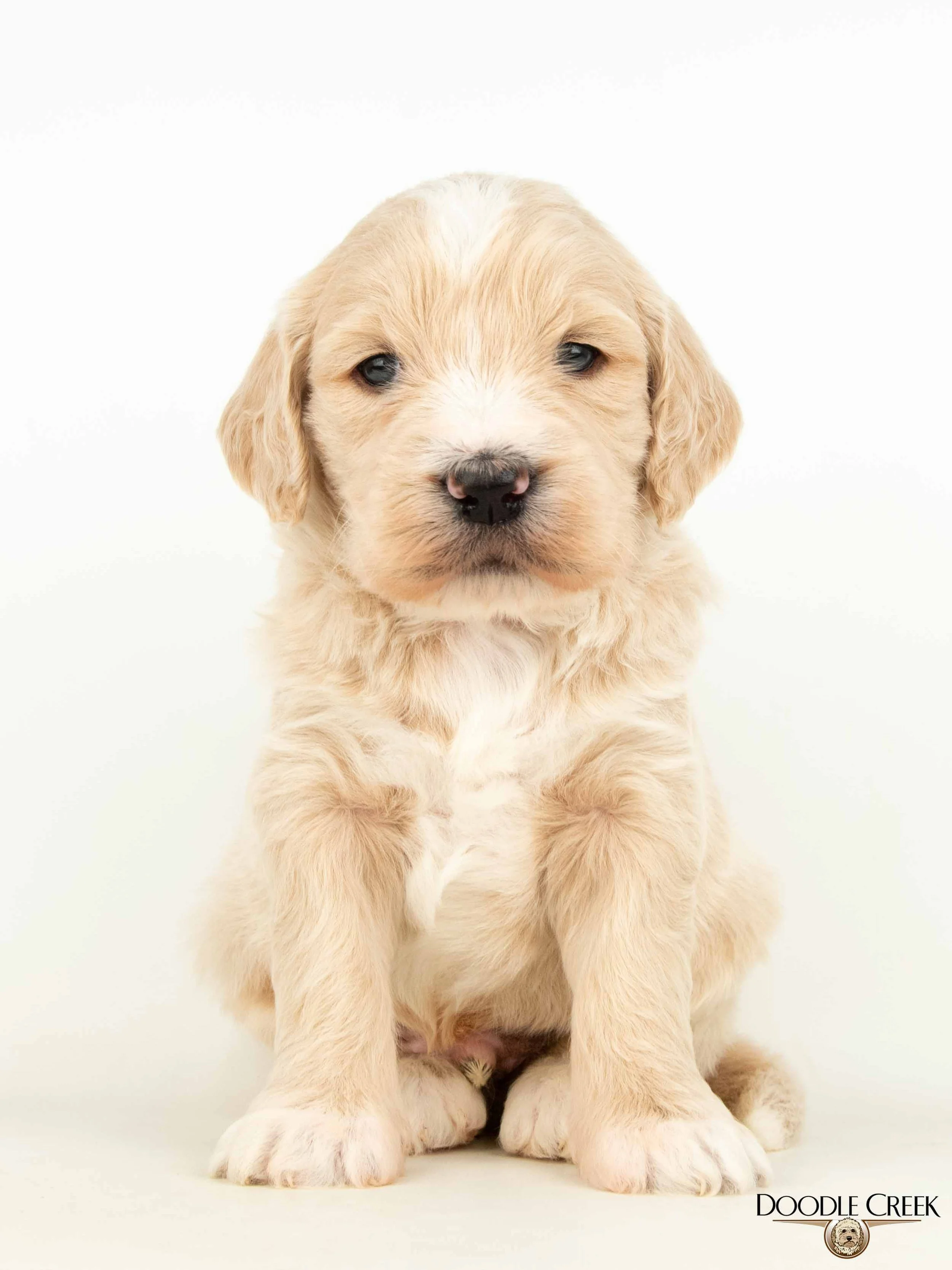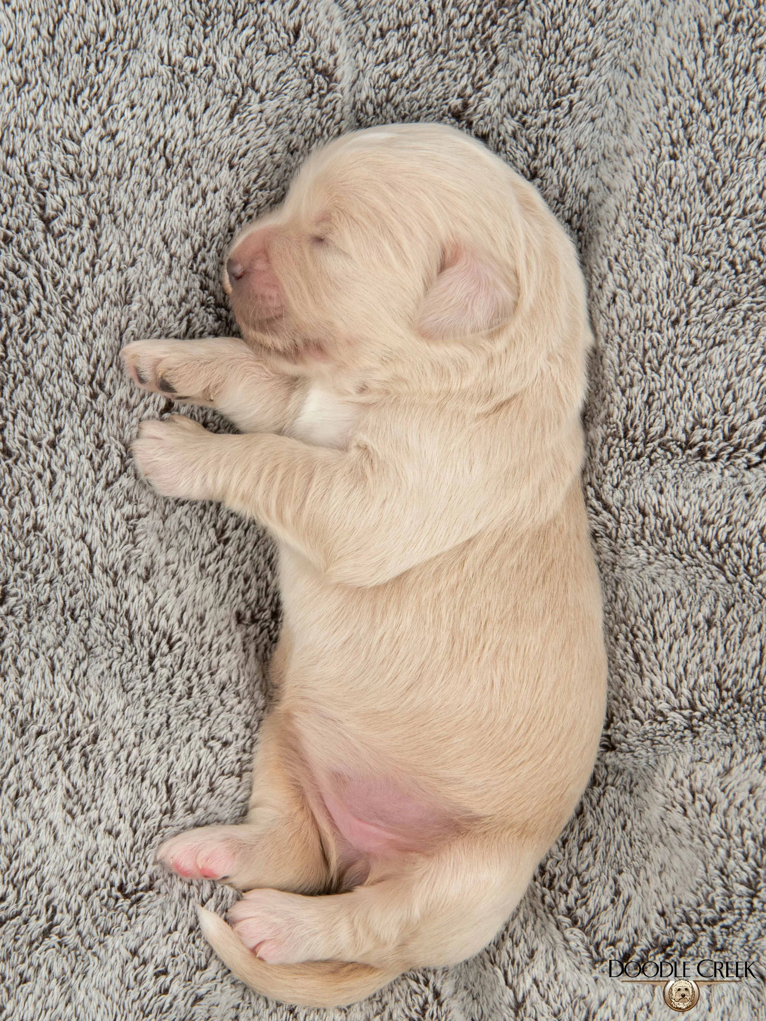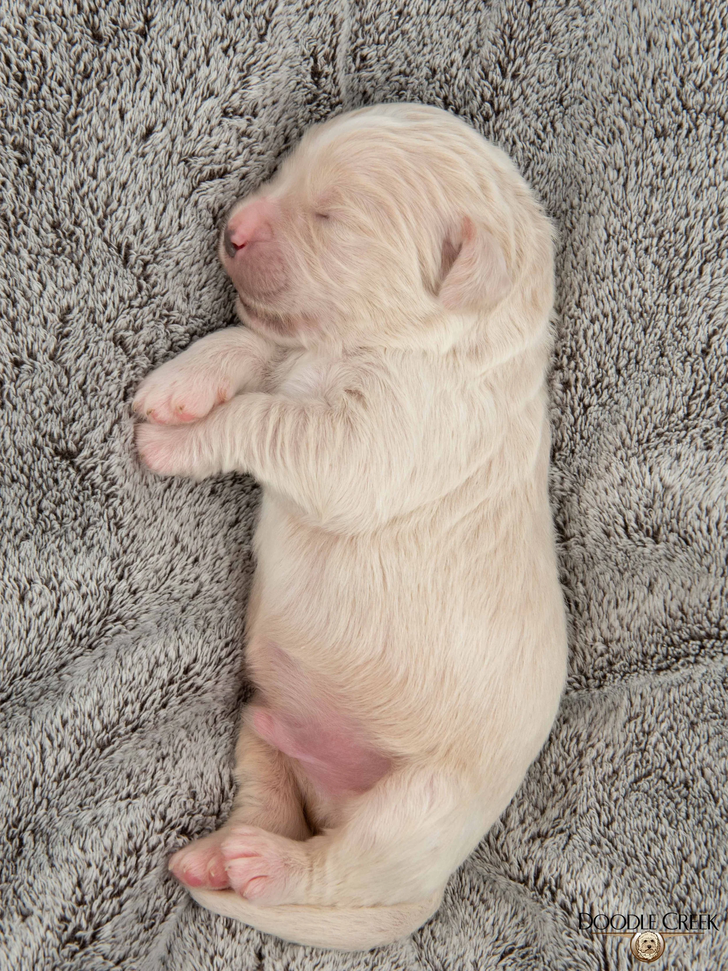 Zola and Wilson’s beautiful litter of F1 Standard English Goldendoodle puppies arrived on February 24, 2026! There are five females and four males in the litter, which will be ready to begin life in their new homes on April 25, 2026. Zola’s big, round face and sturdy bone structure, along with Wilson’s regal looks and loving personality, will bring such a great combination to those looking for a wonderful, well rounded puppy. The puppies range in colour from cream to apricot\white and will have that true Teddy Bear look. They will be excellent with children and will make the ultimate family companion. As adults, they are expected to stand 21-24 inches in height and weigh 55-80 pounds. They will come with their first vaccinations, vet checked, dewormed, microchipped, as well as our two year written genetic health guarantee. If you are interested in reserving a puppy from this litter, we would ask that you complete our online Application and we will get back to you with further details regarding the completion of your reservation. See below for pricing and availability on this litter. Tax is included in all prices.